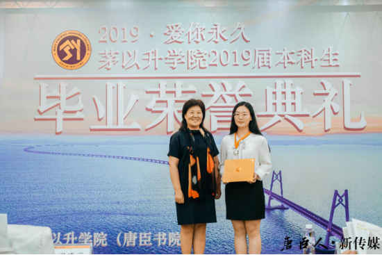 2019届本科毕业生唐臣奖章颁奖仪式。由冯晓云院长上台逐一为唐臣奖章获奖者颁发证书并佩戴银质奖章。这份奖章,本身也许并非天价;但它蕴含的鼓励和见证之意,则无可估量,它饱含了对唐臣学子四年艰苦奋斗所获成就的最大肯定,也满载了学子们四年如一日的坚定理想。