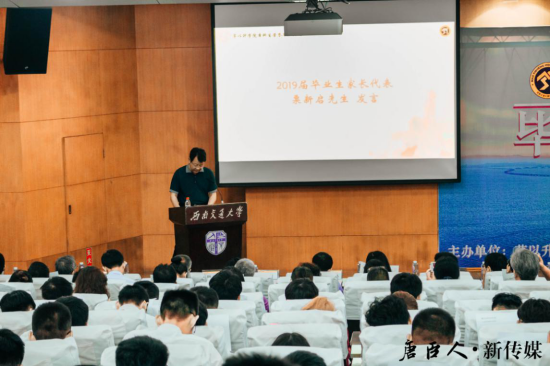 再之后,由2019届毕业生代表赵天胤同学上台发言,他分享了自己大学四年的收获与成长,令人感慨万千。唐臣学子要肩负远大理想和崇高使命,四年间不论是否满意,都要着眼当下和未来,继续奋斗、再接再厉。