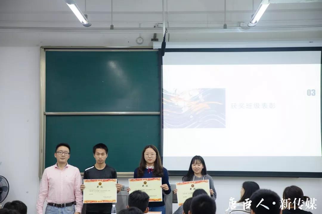 “无手机课堂”是为全面推进学院班风学风建设,创建良好课堂环境,营造浓郁学风氛围而开展的特色教育活动。在全院辅导员与学生工作组的指导与监督下,该活动已与茅院学子相伴了六个春秋,并在实践中取得了不凡的成果。任课老师反馈,班级学委总结,学生工作组考核,在三方的共同努力下,上一学年度中学院推选出了若干示范先进班级,分别是:2017级材料班,2018级数学班,土木班,材料班,中文班,测绘班,信息班,电气班。由王霞书记,毛盾老师,任淑莉老师为他们颁奖并合影留念。