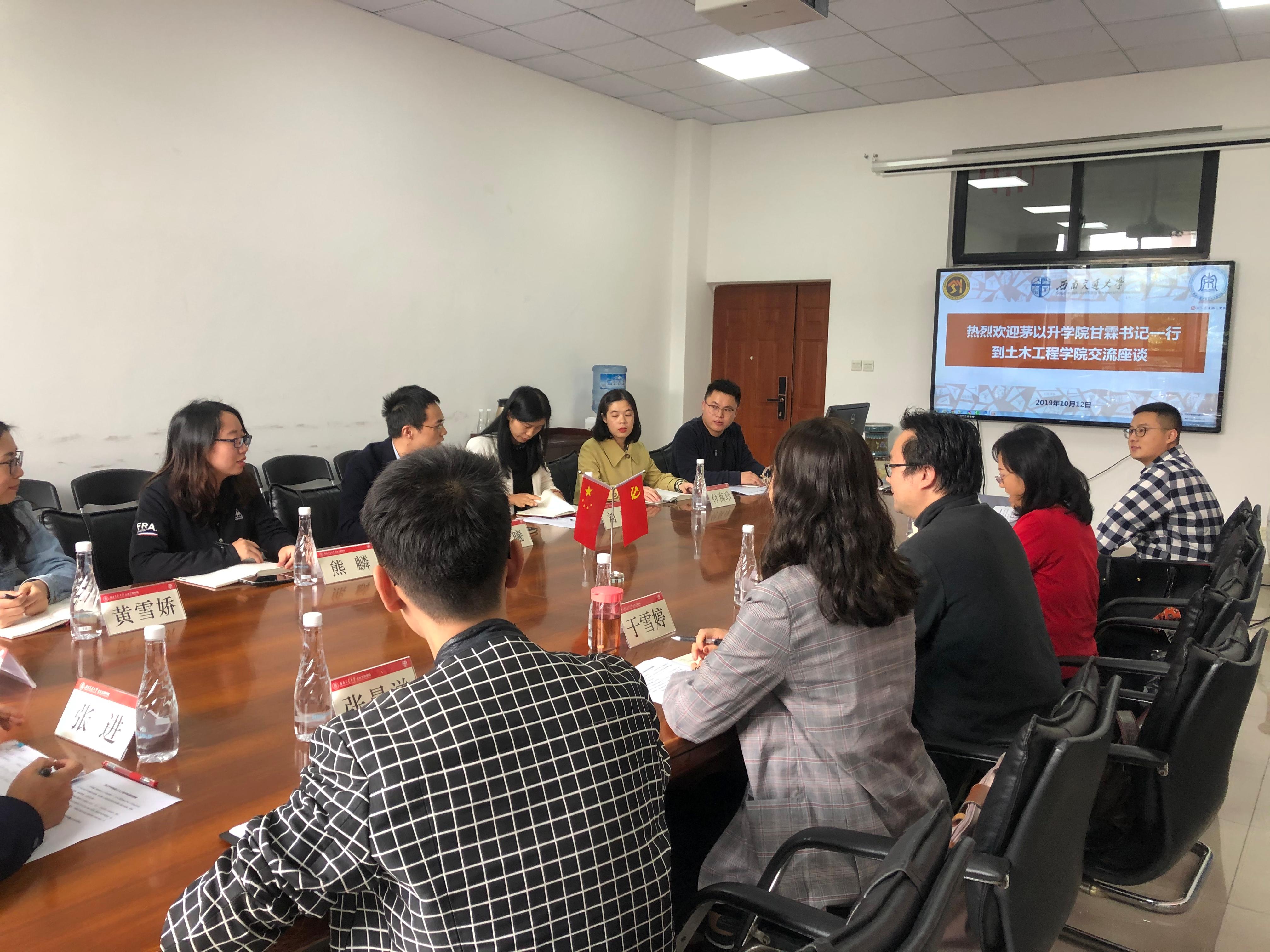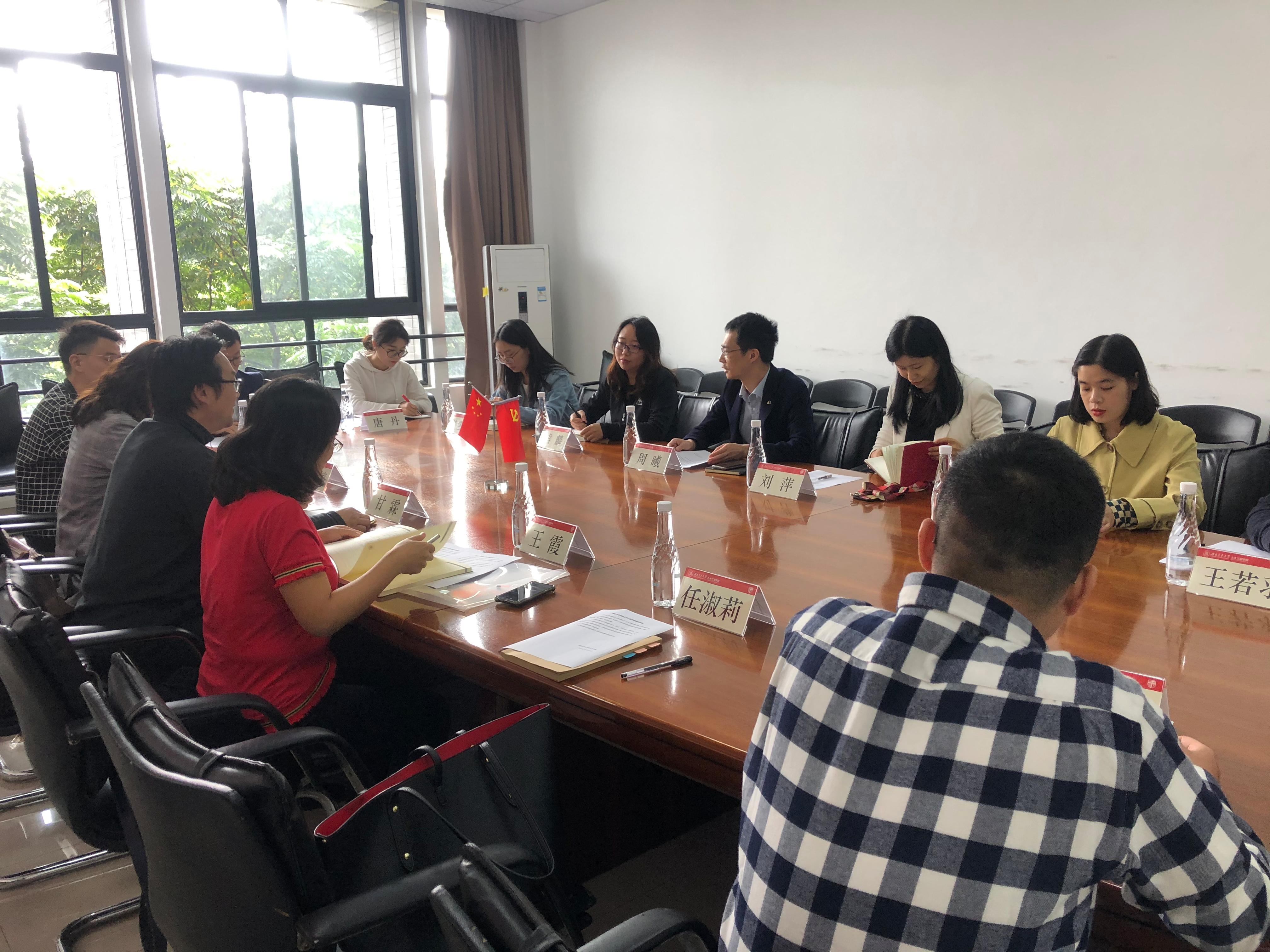 党总支书记甘霖、党总支副书记王霞等一行6人分别前往交通运输与物流学院、土木工程学院等2所兄弟学院进行学习交流。