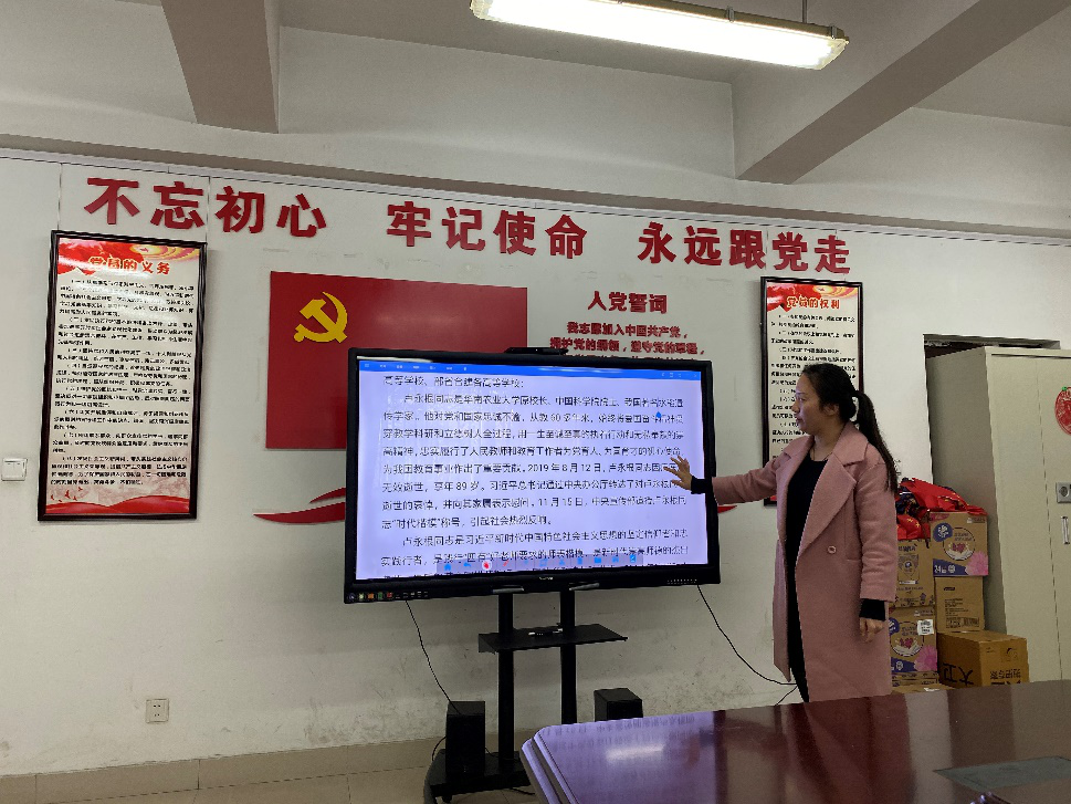 本次读书会主要由教职工党员同志就所学专题进行讲解及集中交流。首先,王宇同志讲解了《习近平在上海考察时强调深入学习贯彻党的十九届四中全会精神提高社会主义现代化国际大都市治理能力和水平》讲话精神;孟涵同志讲解了《习近平在中央党校(国家行政学院)中青年干部培训班开班式上发表重要讲话强调在常学常新中加强理论修养在知行合一中主动担当作为》讲话精神;王丹同志讲解了《教育部关于在教育系统深入开展向卢永根同志学习的通知》。