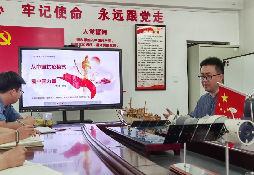 甘霖同志首先向全体教工党员介绍了中国抗疫斗争的世界环境以及中国抗疫模式所彰显的七大中国力量。