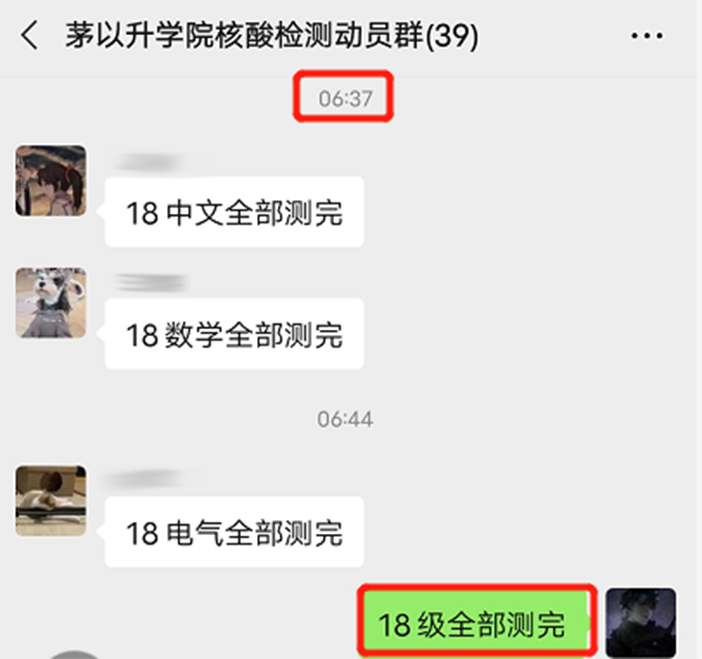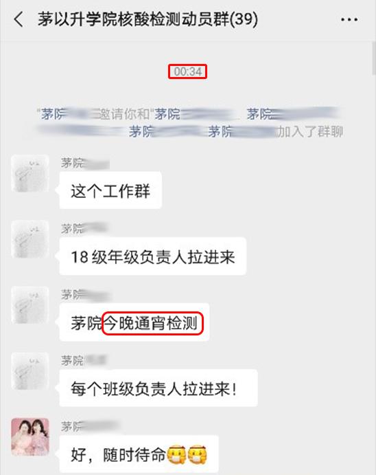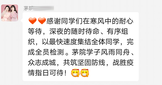 核酸检测动员群,力求将每一位茅院学子的检测落到实处,为每一位茅院学子的安全负责到底。