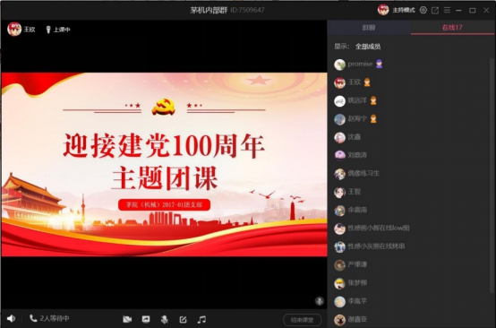 至此,茅院(机械)2017-01团支部迎接建党100周年主题团课到此结束。