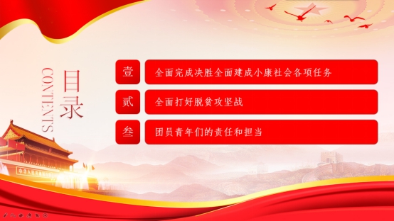 会议开始,团支书王欣同学着重强调今年是我国决战脱贫攻坚和决胜全面建成小康社会的收官之年。接着,从以下三个部分为同学们讲解。