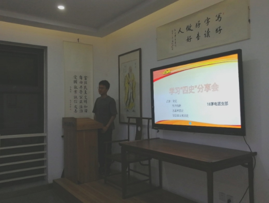 团会上,由团支书肖毅组织大家对“四史”的学习进行交流讨论,同学们积极发言。通过他人分享自己在“四史”学习中的感悟,同学们获得了来自不同的思考角度下的理解,完善了自己对于“四史”的学习。
