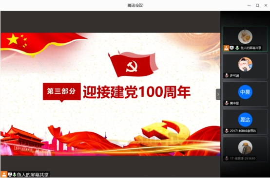 最后,张子佩向大家介绍道:“明年是党的100岁生日,在这样的重要时间节点,我们回顾曾经的历史,展望未来的发展方向,希望作为共青团员也能紧跟党的前进步伐,学习先驱的优良精神”。她号召大家增强“四个意识”,坚定“四个自信”,坚决做到“两个维护”,为祖国的发展贡献自己的力量。