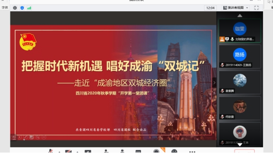 最后,刘珈雯同学向大家讲解了四川各个城市对成渝地区双城经济圈建设所作出的贡献,以及作为青年人的我们能对经济圈的建设做出哪些贡献,成渝地区双城经济圈的建设又为我们年轻一代提供了哪些新兴的机遇。