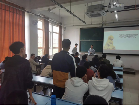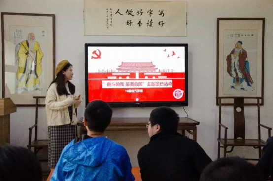 二楼,为热烈庆祝新中国成立71周年,贯彻落实“全团大抓基层”工作要求,加强对青年学生的思想政治引领,激发交大学子爱国荣校热情,2019级茅电班团支部组织全班同学开展“奋斗的我 最美的国” 主题团日活动,此次活动由茅班全体入党积极分子共同组织,由团支书朱宇华主讲。
