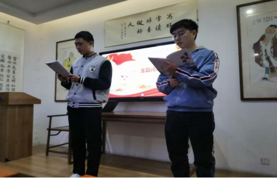 活动伊始,团员全体起立唱团歌,紧接着团支书宣布“奋斗的我,最美的国”主题团日活动开始,然后团支书带领同学学习习近平主席在全国抗击新冠肺炎疫情表彰大会上的讲话,随后,由崔永康和吴文宇两位同学朗诵赞颂祖国的诗歌。