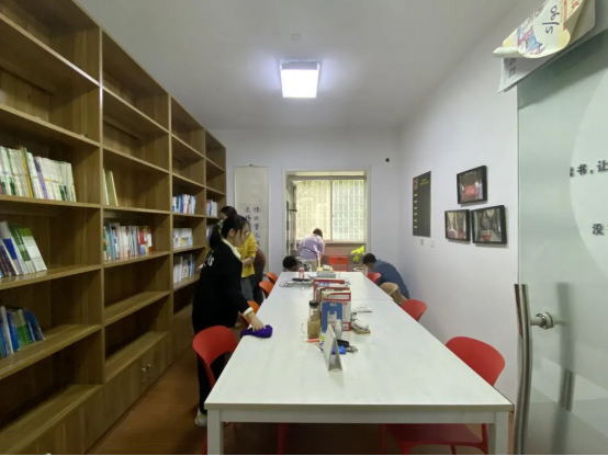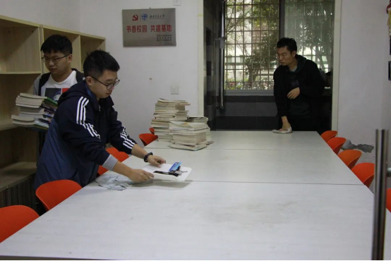 活动进展有条不紊,从任务安排到工作开展,从集合分配到最后收尾,每一项工作都进展得顺利、高效。活动中,志愿者们被分配成两组,分别负责室外环保清洁和室内清理,室外环保清洁小组主要在书院外负责清理丢弃的垃圾废品,并对其进行集中处理;室内清洁小组负责清理废弃物品,并将多余的书籍重新收集分类、小心摆置实验仪器等;志愿者们还仔细将柜子桌子清洁干净,营造一个有学术氛围的自习环境。