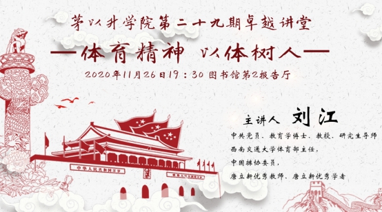 第二十九期卓越讲堂之“体育精神 以体树人”主题讲座于图书馆二号报告厅举行。西南交通大学体育部主任、中国排协委员刘江教授担任本期卓越讲堂的主讲人。