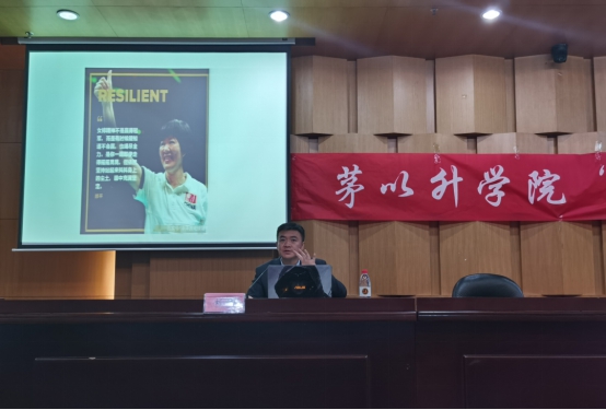 首先,刘江教授告诉我们,中国精神支撑着中国人民在几千年的华夏文明中生生不息。其中就包括女排精神,航天精神,抗疫精神等。刘江老师通过分享了自己作为一名国际排球裁判的经历——率先尝试“鹰眼”挑战系统,率先尝试排球裁判头戴摄像头的经历教导我们要有敢于尝试、敢于争先的精神。