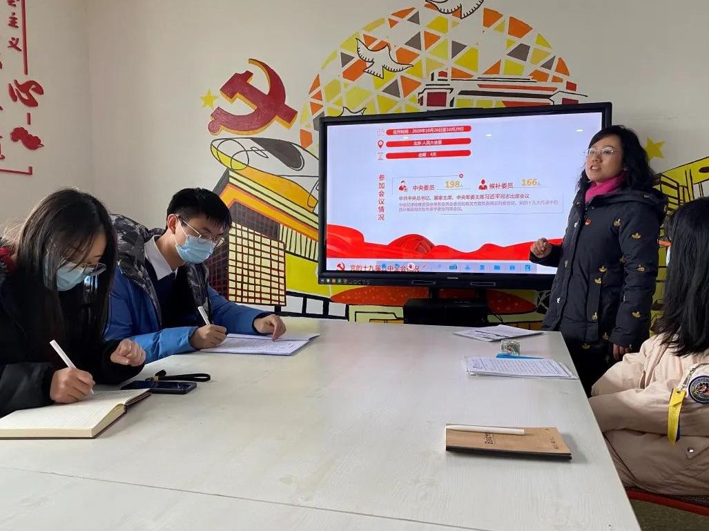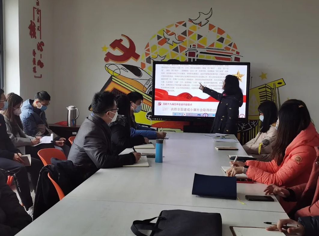 六楼“励志厅”开展了“深入学习贯彻党的十九届五中全会精神,全面学习解读公报内容”的党课活动。党课由王霞副书记主讲。