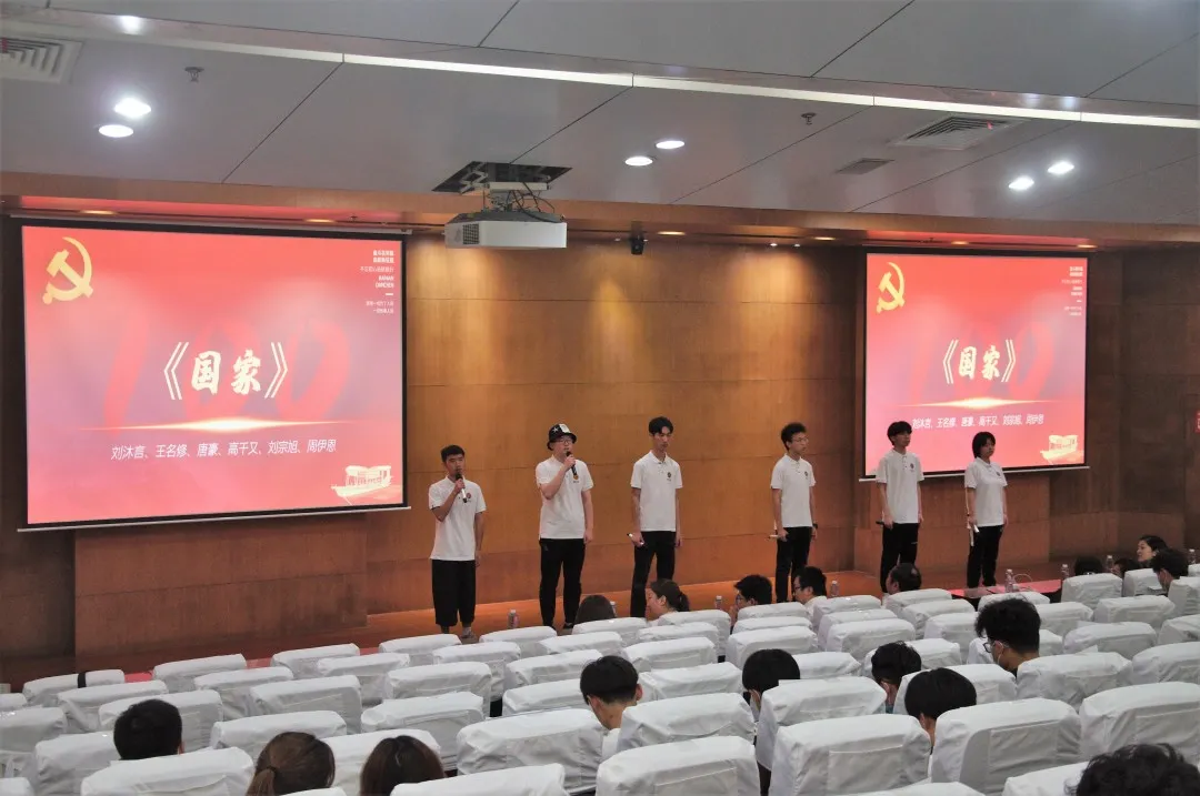承唐歌友会的同学们为大家现场演唱了《我和我的祖国》、《国家》两首歌曲,在歌颂伟大祖国的歌声中,场下的观众也都渐渐融入了现场的气氛,用双手打着节奏跟着歌声吟唱起来。随着歌曲的结束,晚会进行到下一环节——对在“唱支好歌给党听”百个班级线上拉歌比赛中获得“十佳作品奖”的集体进行颁奖。
