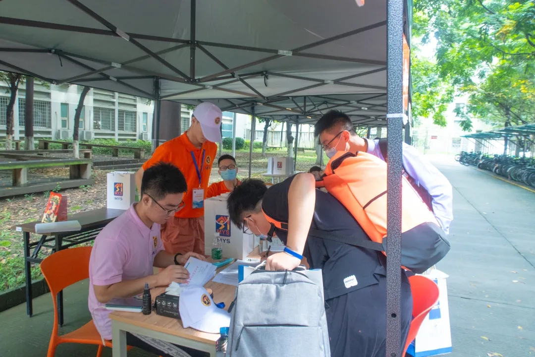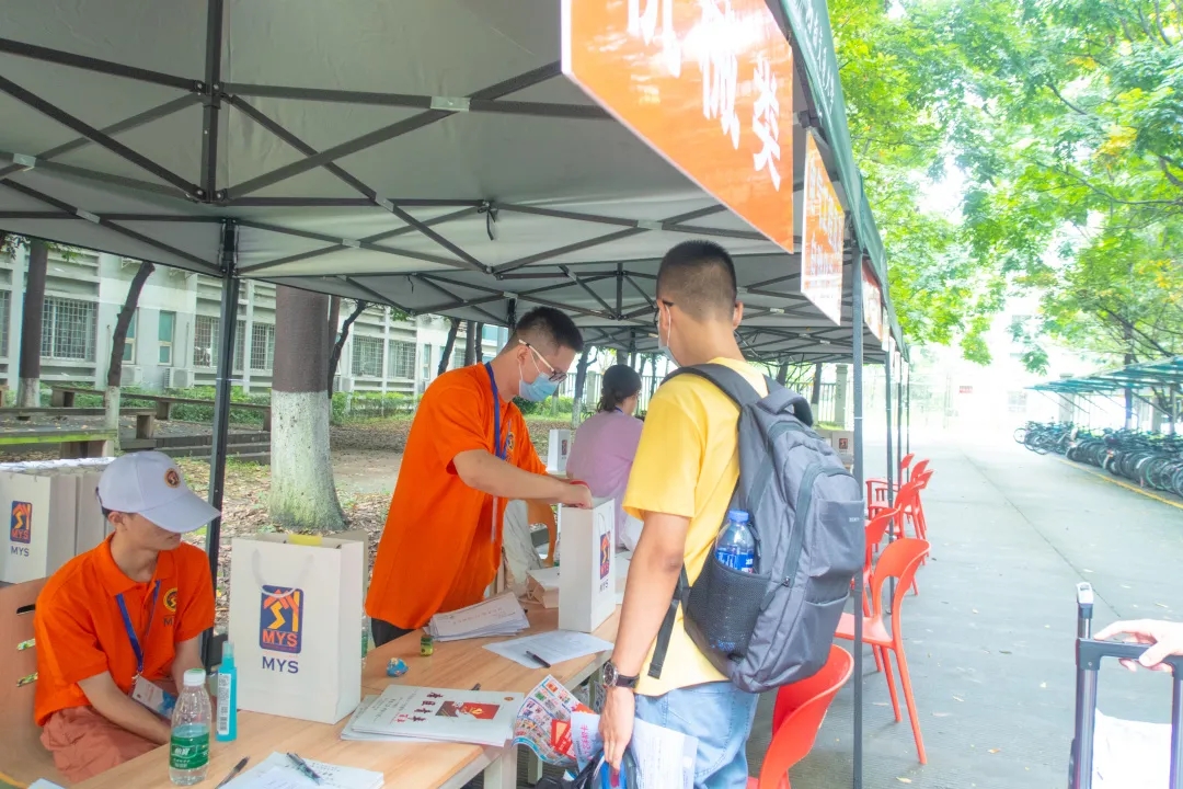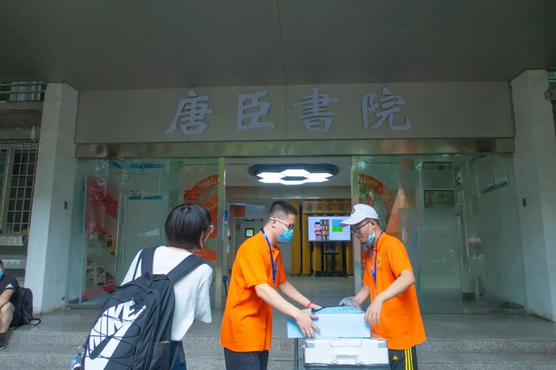 ,在书院门口等候多时的班导生们为同学们分发钥匙、水卡、新生大礼包以及代表茅院学子的唐臣文化衫。志愿者们穿梭于楼栋之中,搬运着一件件沉甸甸的“关爱”,挥洒汗水与热情。