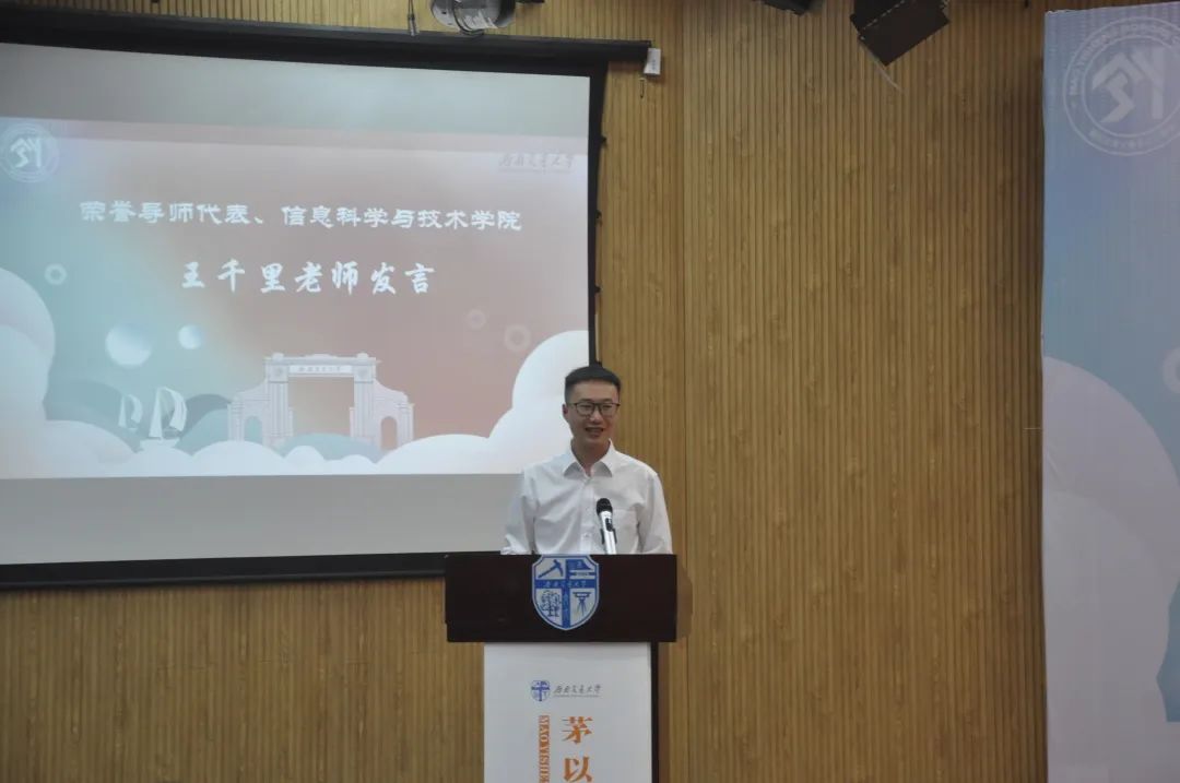 荣誉导师受聘仪式,由康国政院长为各相关专业学院荣誉导师颁发聘书。随后,2022级新生荣誉导师代表、信息科学与技术学院王千里老师发言,作为四年求学生活最亲近的人,班导师在同学们成长成才历程中扮演着不可或缺的角色,王老师激励同学们身处不确定的时代当中,做到“屯才,屯学,屯识,屯体”,增强自身能力和底气,勇担时代之梁。接下来,全体腐漫画