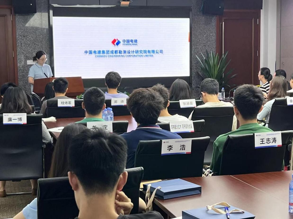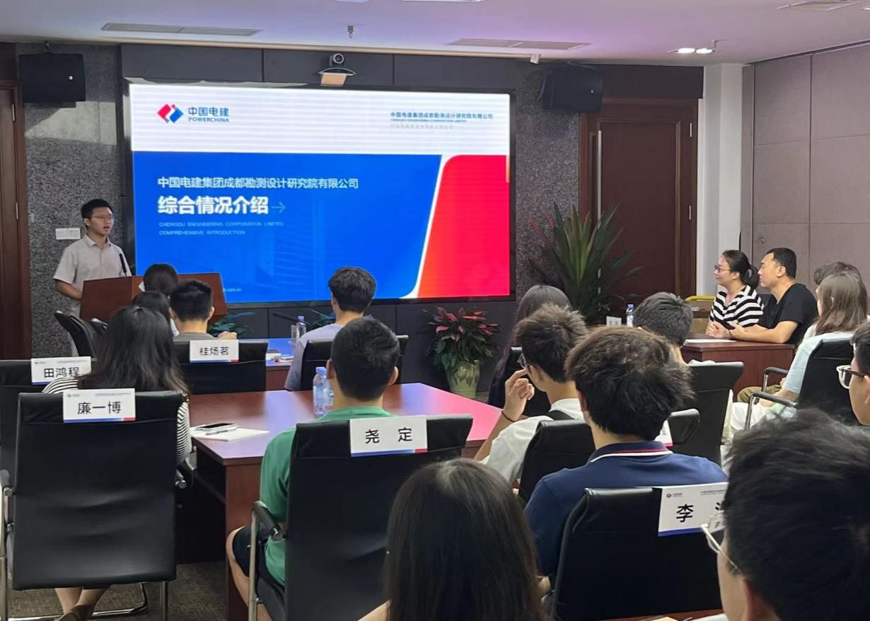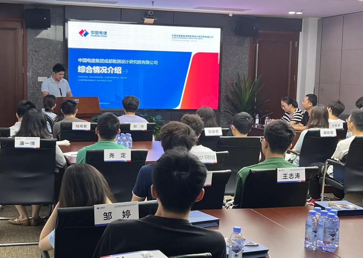 中国电建集团成都勘测设计研究院的工作人员带领同学们进入公司会议室并播放公司相关视频和PPT,向同学们介绍了公司的发展现状以及成就。同学们现场了解到公司在水环境以及湿地公园污水处理方面为人民生命健康做出的贡献,以及在我国能源电力工程中承担的规划论证和勘测设计,协助建造了如两河口混蓄等世界闻名的项目,还有在城市轨道交通建设中所建造的桥梁、隧道、公路等诸多工程。