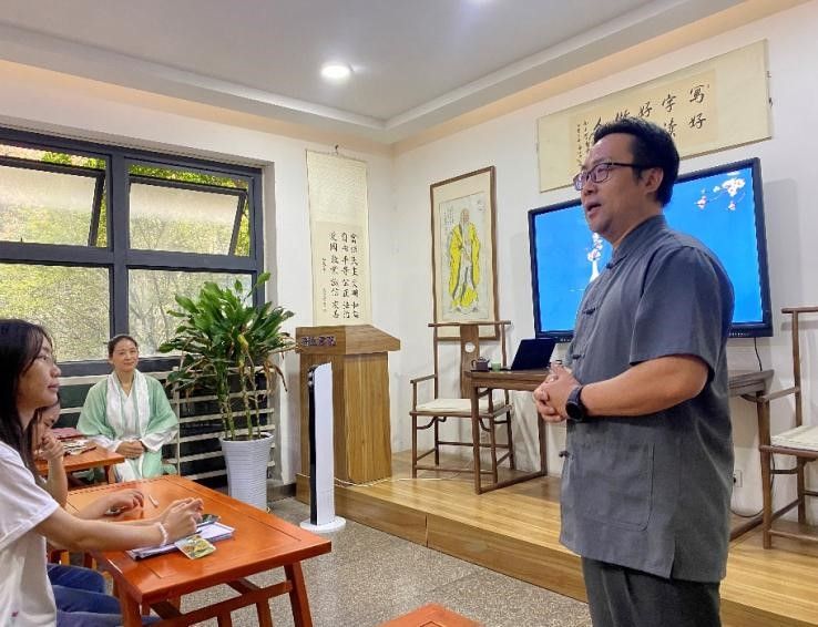 景心老师分别从“华夏”“中华儿女”的含义、中华传统“五礼”、汉服的妆容、历代汉服形制与特点、汉服与汉礼、习礼修德与文化复兴等几个方面为师生进行了详细的讲解。