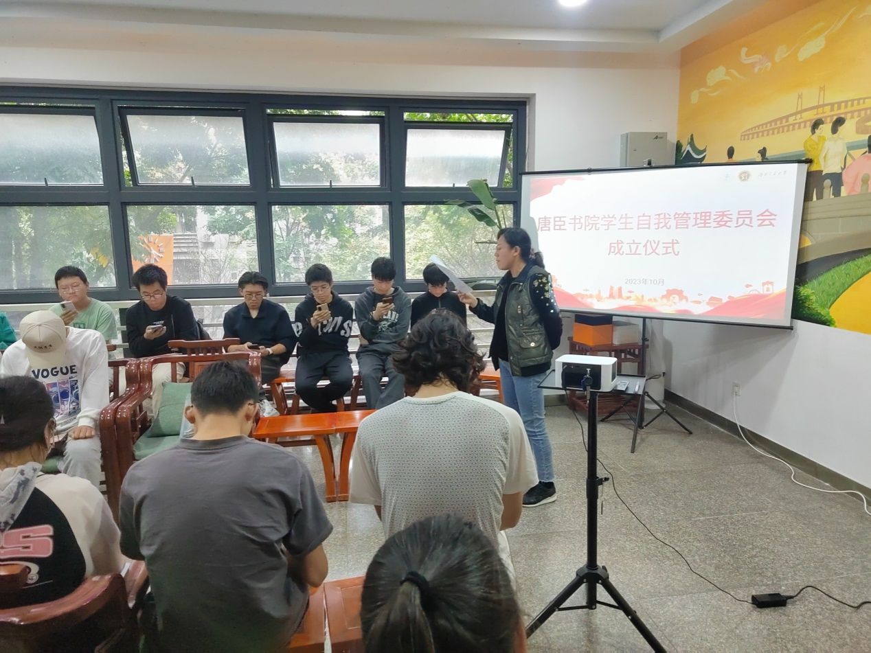 )学生自我管理委员会章程》进行了详细解读,明确了自管会的任务和职责。她强调了茅院学子参与书院管理与决策的重要性,鼓励同学们积极参与书院的管理服务工作,打造书院管理育人工作“师生共同体”。