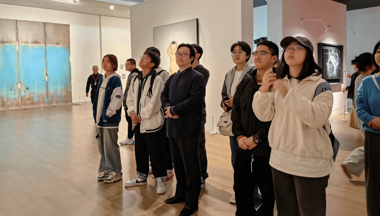 同学们跟随甘霖书记的脚步,一边欣赏艺术作品,一边积极思考,主动提出心中疑惑。每当同学提问,甘书记总能根据自己丰富的阅历,表达出对作品新颖且独到的见解,往往一句话就使大家恍然大悟。同时,甘书记鼓励同学们带着批判精神去欣赏艺术作品,在与艺术的对话交流中进一步加深对作品内涵的认识与理解。