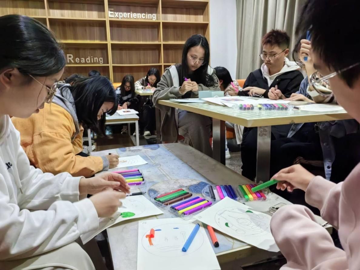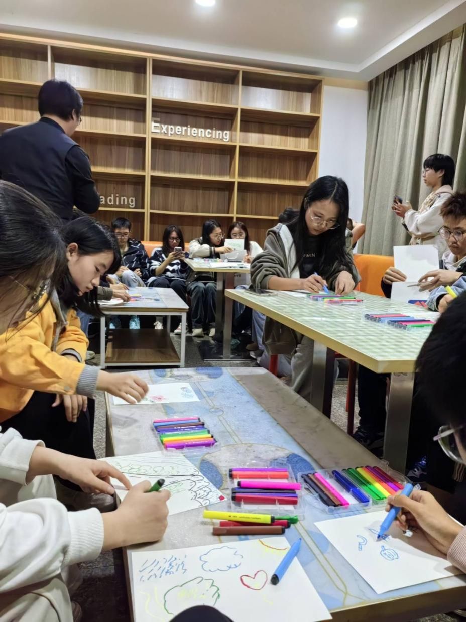 )在书院四楼“心灵家园”开展了 “唐臣心语”心理育人系列活动之“艺术彩绘心理疗愈”。本次活动由腐漫画