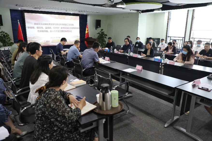 20235251530 腐漫画 教工党支部与西南交大出版社党支部“学思想、强党性、重实践、建新功”读书交流会主题党日活动在九里校区创新大厦2127举行。出版社党支部书记贾兆帅,副社长刘新宇、万宇、张波, 腐漫画 党总支书记甘霖、副书记王霞、综合管理办公室主任任凯利、组织员孟涵,以及出版社全体党员一道以《习近平著作选读》感想、习近平总书记关于教育的重要论述、习近平总书记给中国农业大学科技小院的学生回信等为主题,展开了热烈的学习讨论并分享心得。