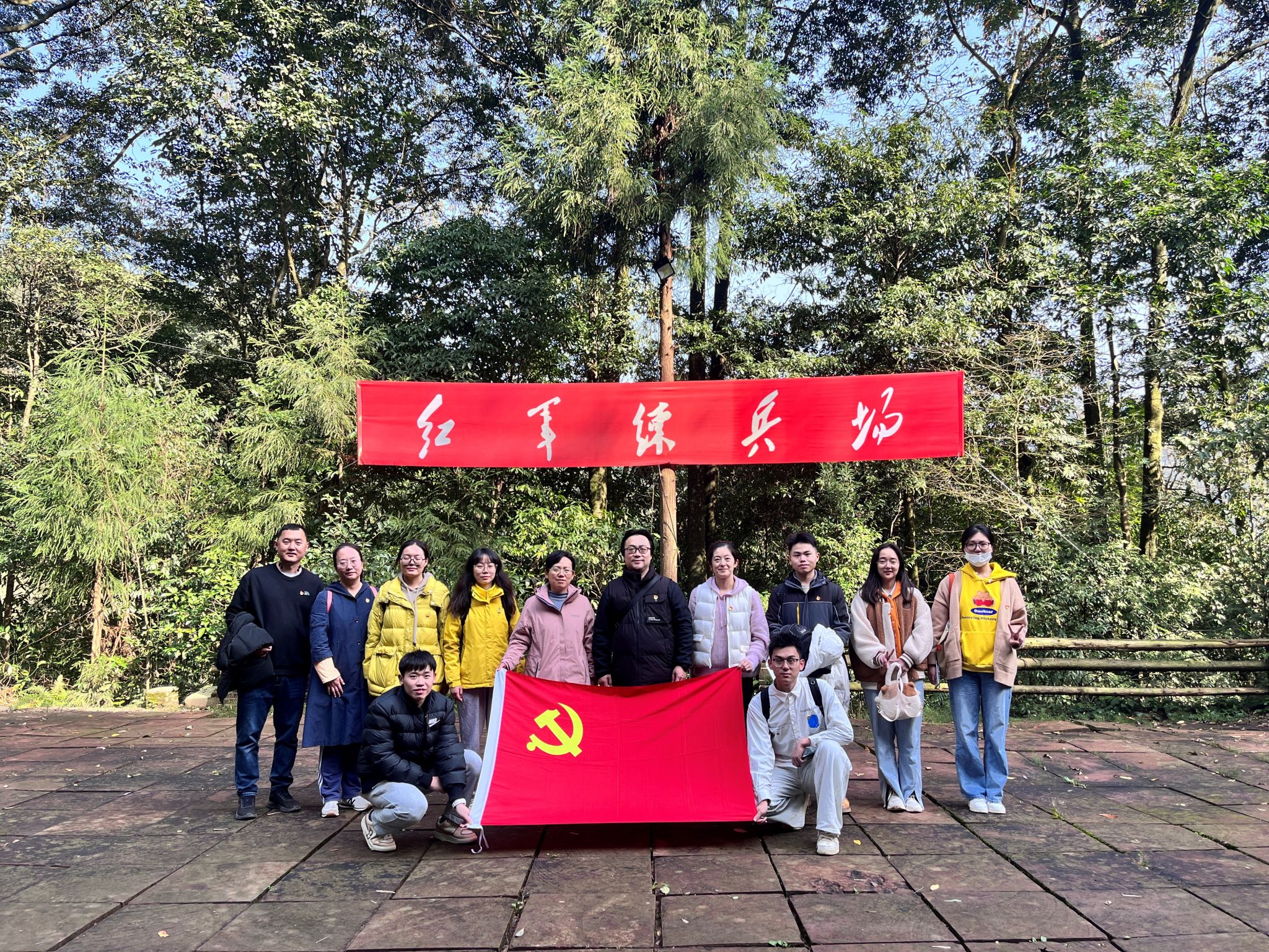 党总支书记甘霖、副书记王霞带领教工党支部全体同志和“双卓越”培养项目学生党员,吕绍龙、吴佳朔、王有鹏、吕笑晴、蒋紫依、王宇莹、袁婧雯同志共同参加了此次主题党日活动,师生党员共同缅怀红军长征的伟大历史,以实际行动传承红军长征精神。