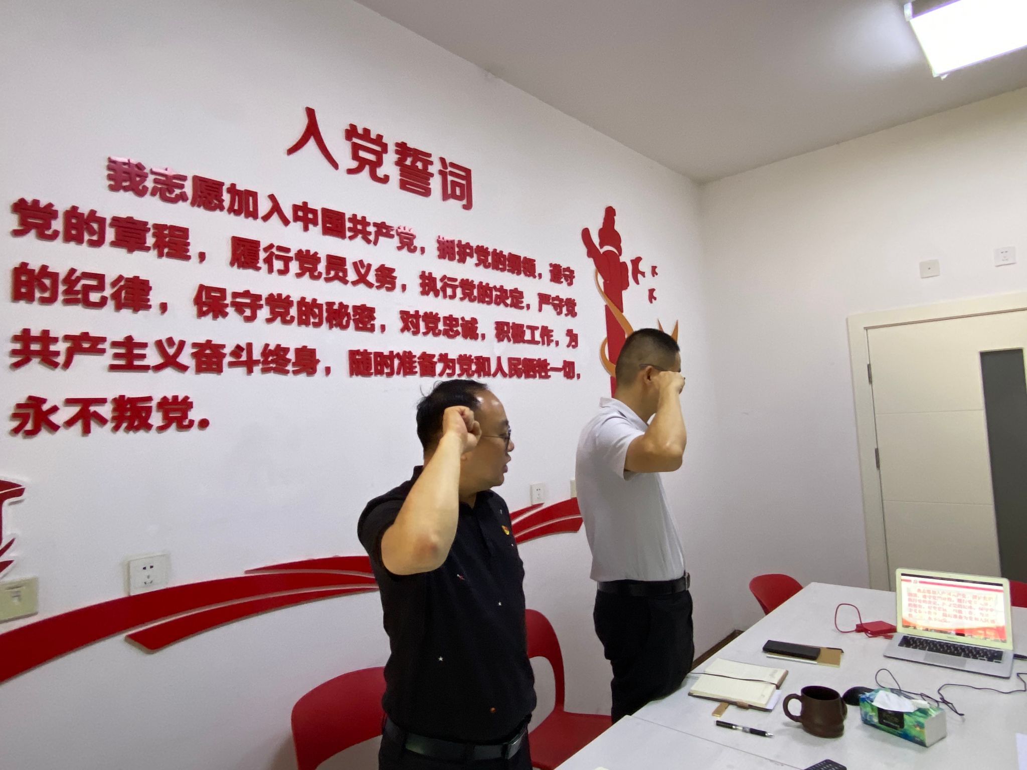 专题党课后,李毅带领全体党员重温入党誓词,庆祝中国共产党成立103周年,更加坚定理想信念。