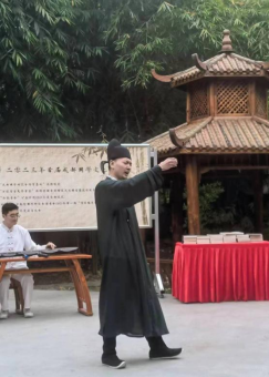 随后,成都国学研究会古琴专委会指导老师圣莲与她的弟子们表演了古琴演奏,知名青年影视演员张玉昂扮演李白朗诵《将进酒》,精湛的琴技、豪迈的激情赢得了大家阵阵掌声。